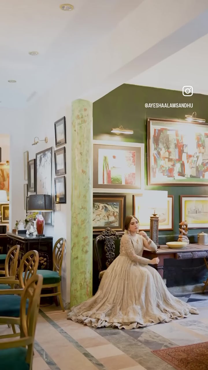 An ivory tulle double layered pishwas, hand worked using dabka, zardozi and hand cut sitara.
