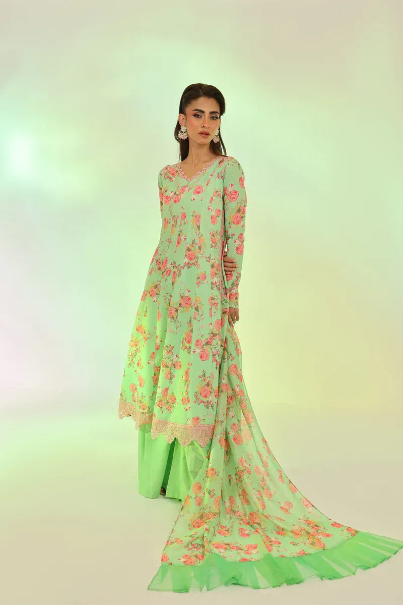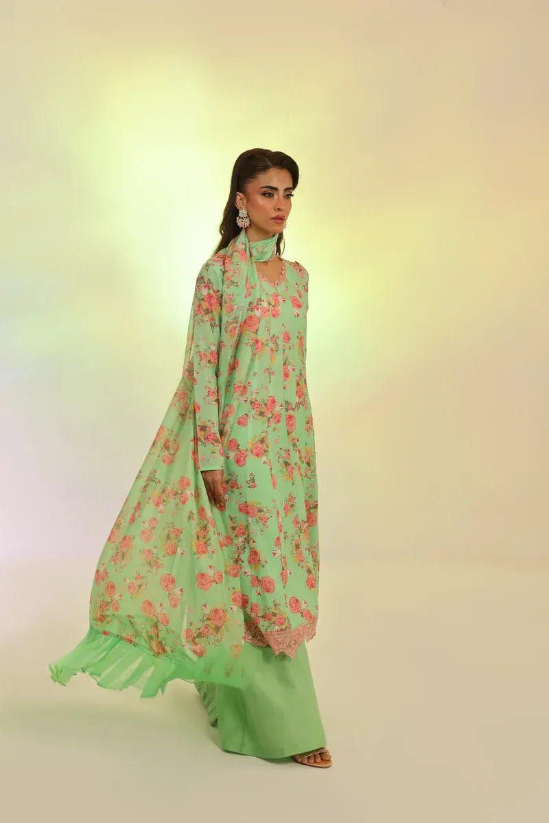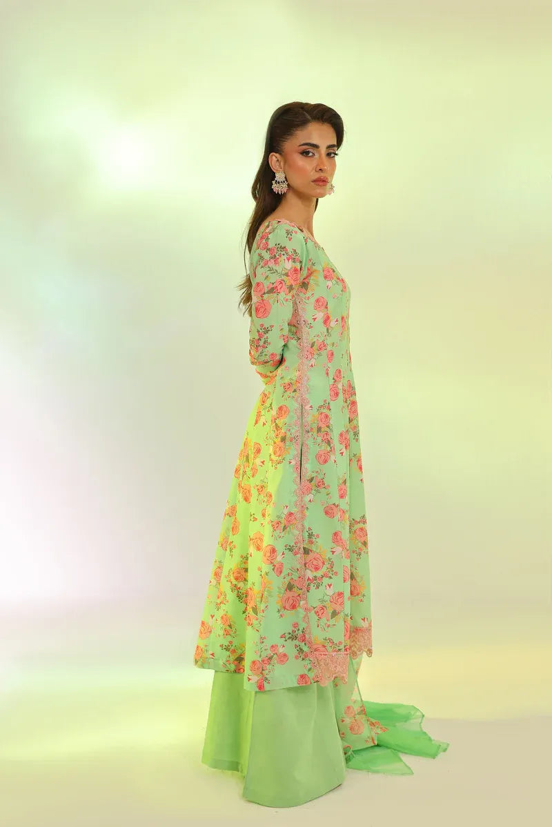 Slay this stunning look this Eid with this ensemble featuring a long kaidaar shirt, paired with a silk dupatta and flared culottes— the perfect addition of sophistication to your Eid wardrobe.