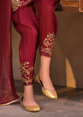 Sequence Chiffon poncho with hand work on neckline and sleeves.and hemline pairred with silk dhaka shlwar.