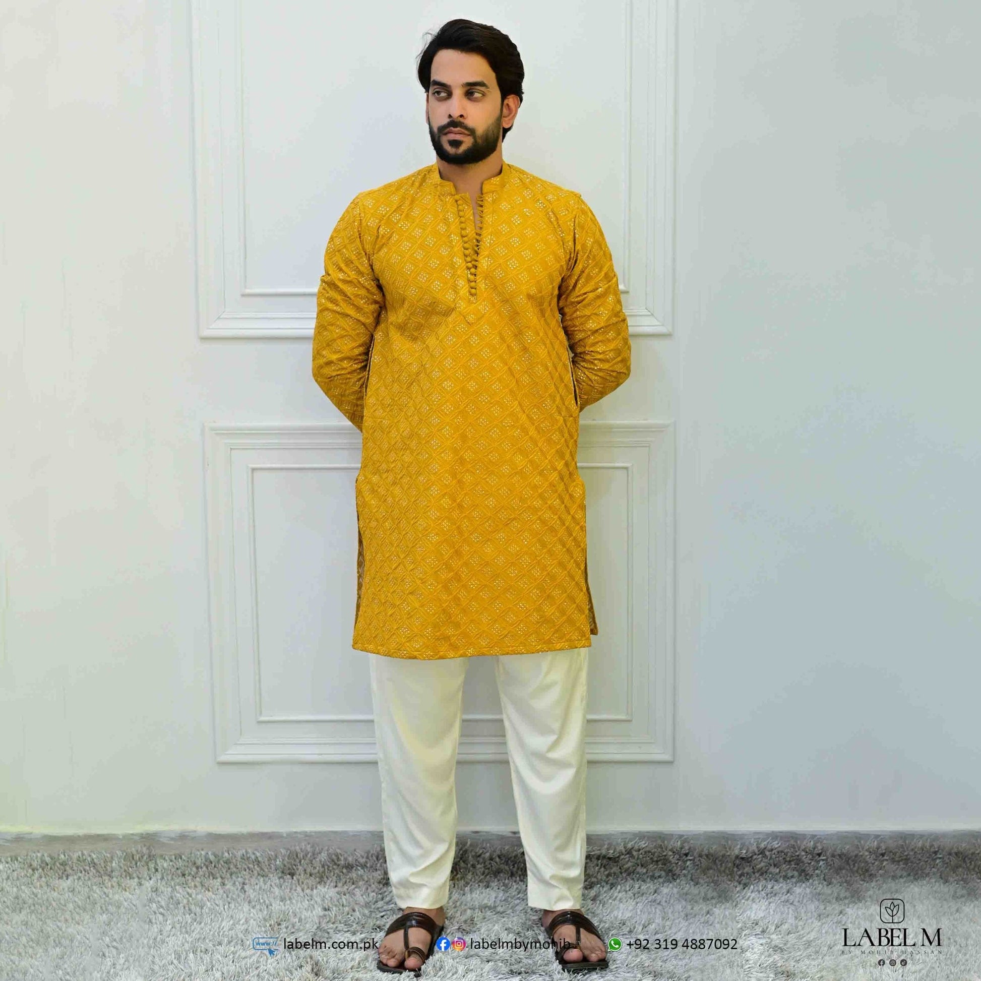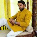 Mustard raw silk embroidered kurta perfect for festive celebrations or special gatherings, this kurta offers both comfort and style.