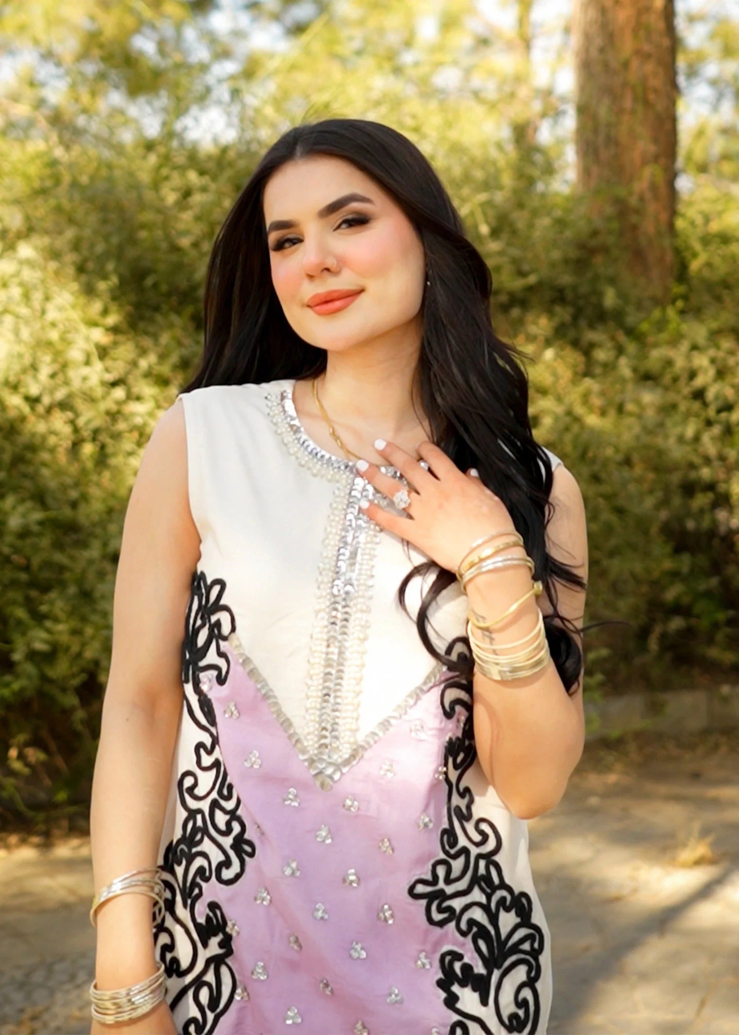 Drape yourself in timeless grace with this off-white and multi-colored tissue silk ensemble, designed to radiate festive charm. The luxurious tissue silk fabric flows effortlessly, offering a delicate yet regal silhouette. Intricate embellishments add a touch of opulence, catching the light with every movement, making it perfect for Eid celebrations. The harmonious blend of soft off-white with vibrant multi-hued accents creates a mesmerizing contrast, embodying both tradition and modern sophistication. Elevate your festive wardrobe with this effortlessly stylish and comfortable masterpiece.