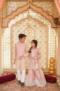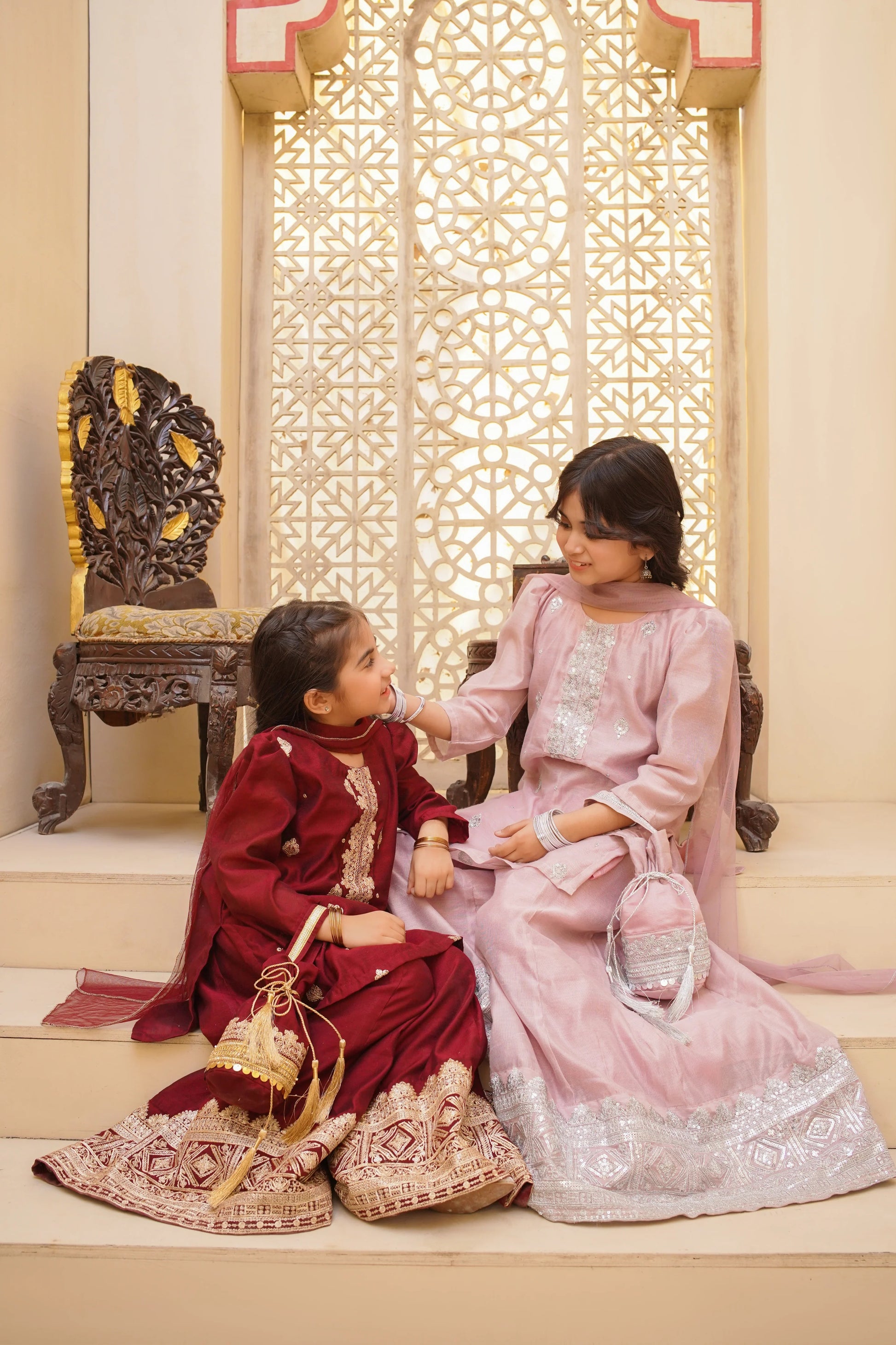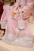 Silver and Onion Pink khaadi net culottes set with intricate zarri and sequence embroidery and net dupatta.